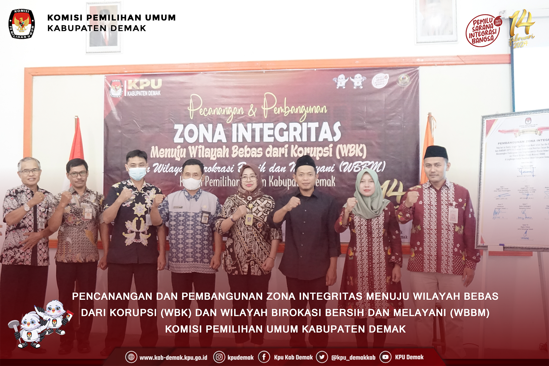 Ketua KPU Kabupaten Demak, Bambang Setya Budi menyampaikan bahwa integritas KPU secara nasional masuk ke dalam kategori baik, sehingga dalam rangka mewujudkan pemilu yang berintegritas dan berkualitas, KPU sebagai lembaga publik berkomitmen selalu memberikan dan meningkatkan pelayan bagi masyarakat.
