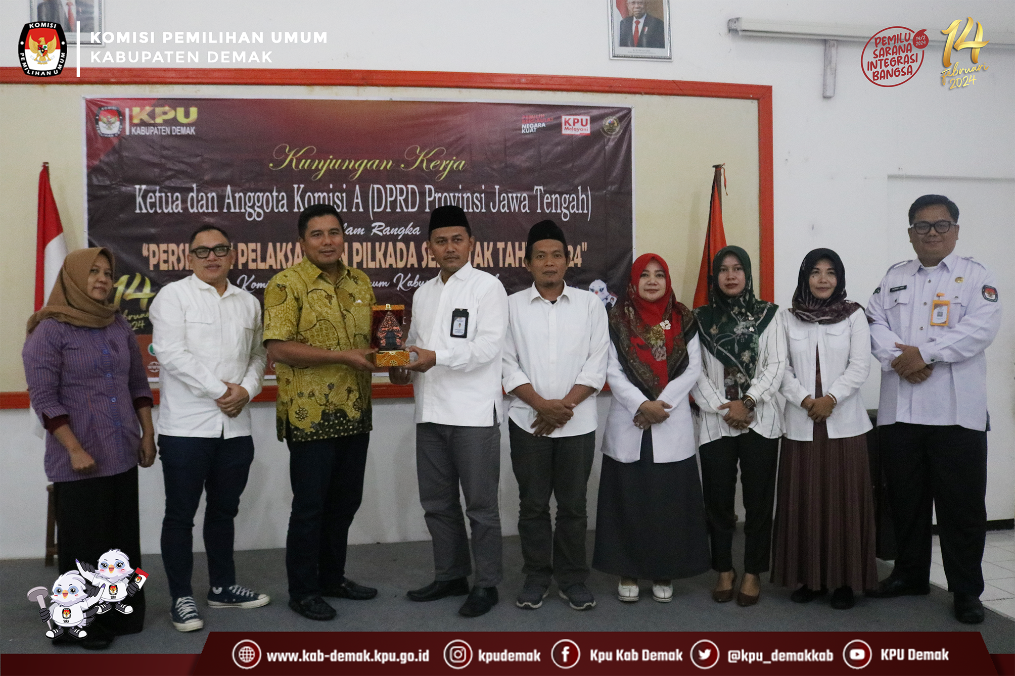 Hadir secara langsung dalam kunjungan tersebut Ketua Komisi A DPRD Provinsi Jawa Tengah, Mohammad Saleh, ST; Anggota Komisi A DPRD Provinsi Jawa Tengah, yaitu Deny Septiviant, SH; Ir. Sulistyorini, MM yang didampingi oleh Sekretariat DPRD Jateng; dan Tim Ahli DPRD Provinsi Jawa Tengah. Sedangkan dari KPU Kabupaten Demak dihadiri oleh Ketua dan Anggota KPU Kabupaten Demak beserta jajarannya.