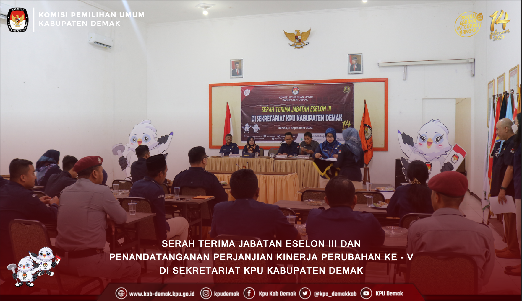 Demak, kab-demak.kpu.go.id - KPU Kaupaten Demak melaksanakan Serah Terima Jabatan dan Penandatanganan Perjanjian Kinerja pada Selasa (5/9/2023)