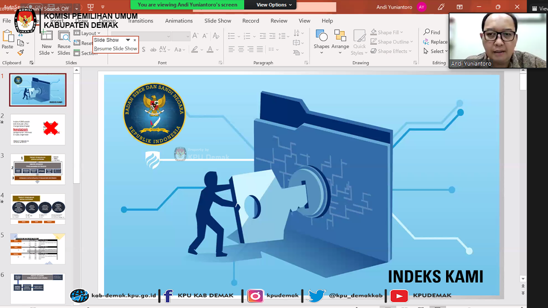 Dalam rangka meningkatkan indeks keamanan informasi (Indeks KAMI) KPU Kabupaten Demak mengikuti webinar yang diadakan oleh Dinas Komunikasi dan Informatika Kabupaten Demak yang bertajuk Sosialisasi SOP Keamanan Informasi pada Selasa (11/01/2022).