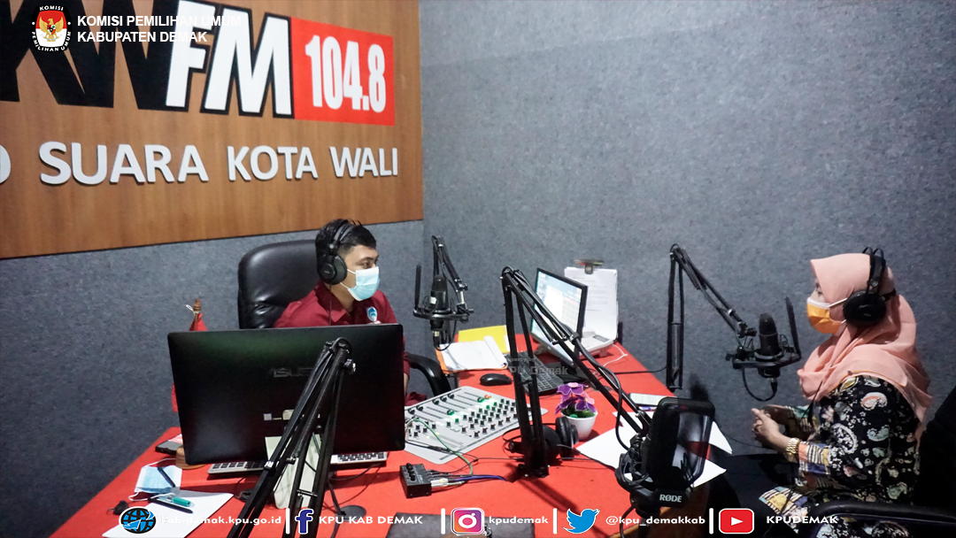 Hadir sebagai narasumber dalam kegiatan tersebut Siti Ulfaati, M.S.I Anggota KPU Kabupaten Demak Divisi Sosdiklih, Parmas dan SDM dengan host dari Radio Suara Kota Wali (RSKW) Demak, Enzy.