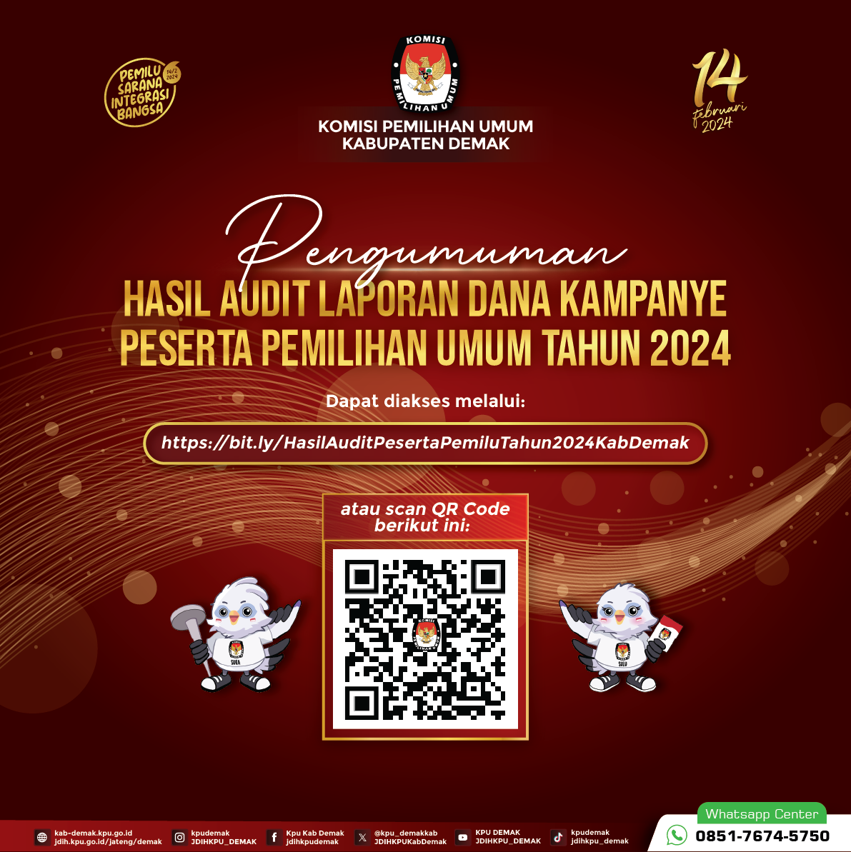 PENGUMUMAN HASIL AUDIT LAPORAN DANA KAMPANYE PARTAI POLITIK PESERTA PEMILIHAN UMUM TAHUN 2024 SE-KABUPATEN DEMAK