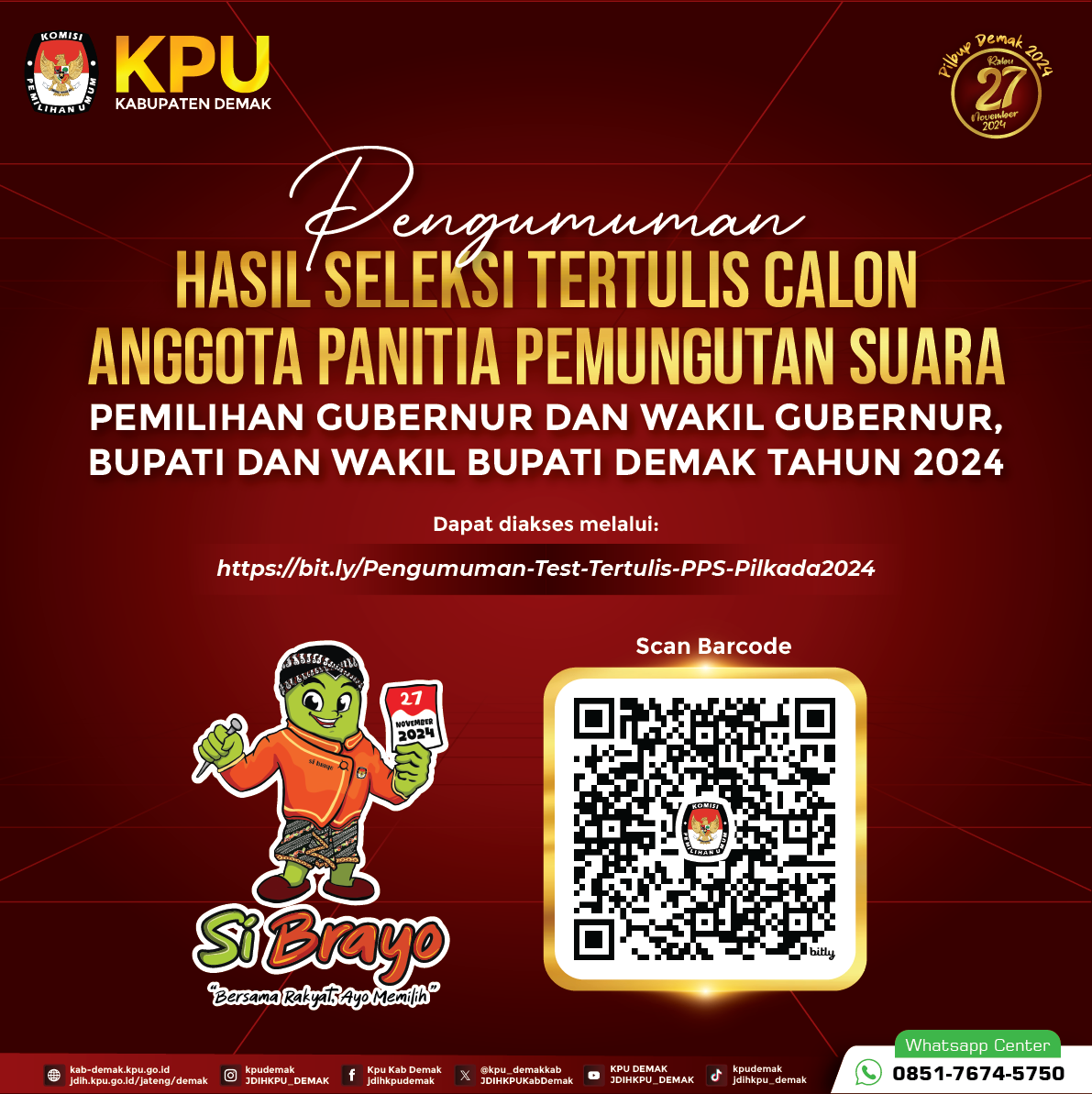 PENGUMUMAN HASIL SELEKSI TERTULIS CALON ANGGOTA PPS UNTUK PEMILIHAN GUBERNUR DAN WAKIL GUBERNUR, DAN BUPATI DAN WAKIL BUPATI PADA KABUPATEN DEMAK TAHUN 2024