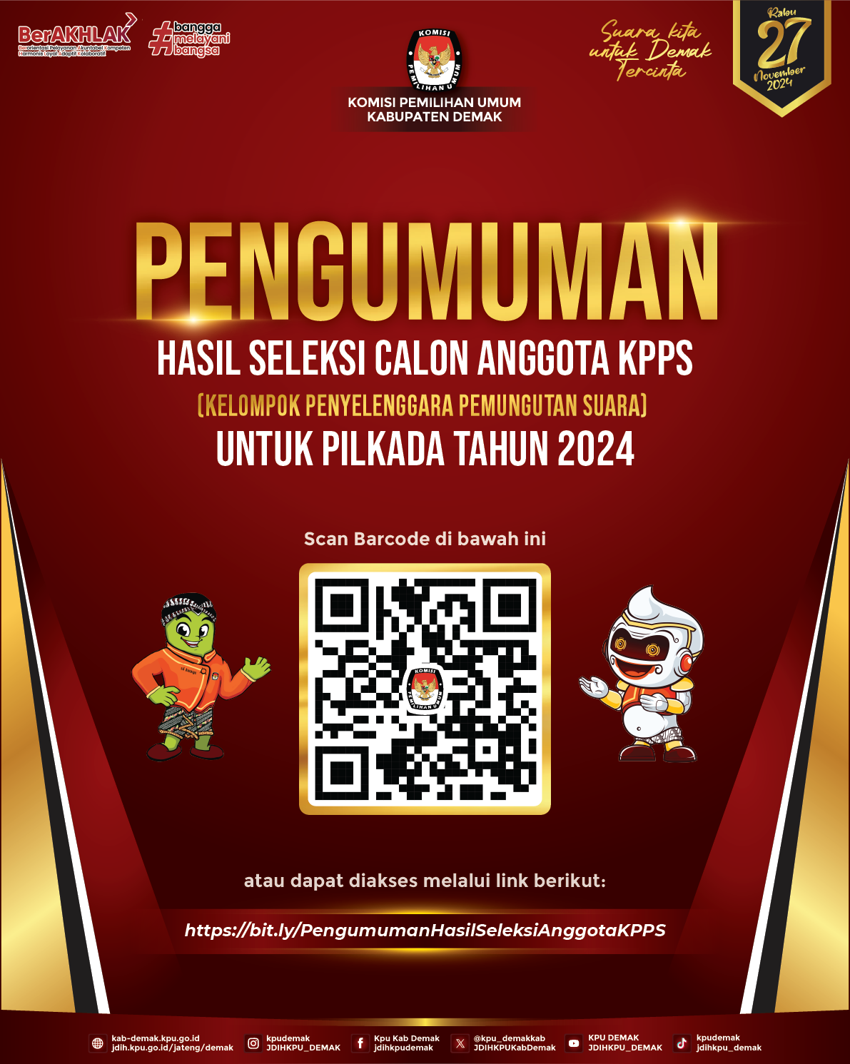 Pengumuman KPU Kabupaten Demak tentang Pentapan Hasil Seleksi Calon Anggota KPPS Pilkada Tahun 2024 |