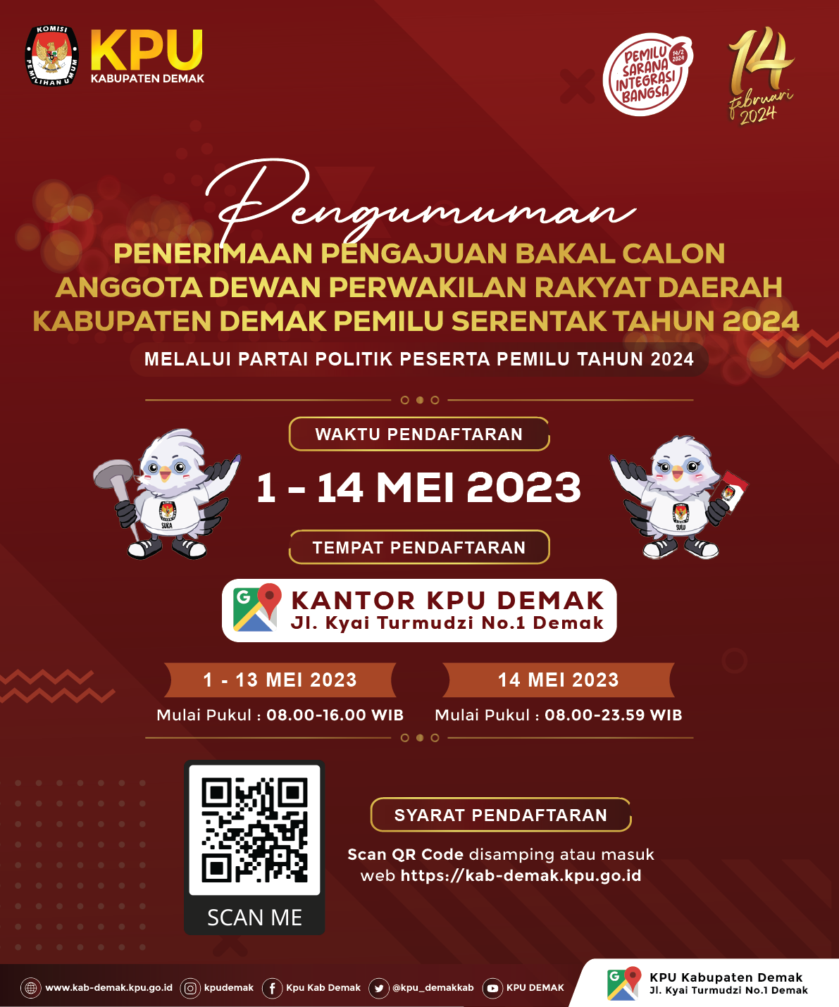 PENGUMUMAN PENGAJUAN BAKAL CALON ANGGOTA DEWAN PERWAKILAN RAKYAT DAERAH KABUPATEN DEMAK UNTUK PEMILU SERENTAK TAHUN 2024
