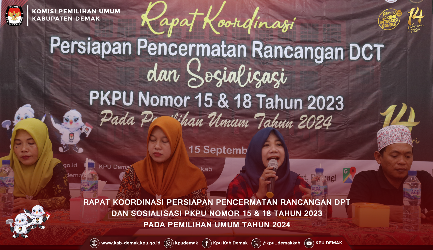 Demak, kab-demak.kpu.go.id (15/9/2023) - KPU Kabupaten Demak melaksanakan kegiatan Rapat Koordinasi Persiapan Pencermatan Rancangan DCT dan Sosialisasi PKPU Nomor 15 & 18 Tahun 2023 pada Pemilihan Umum Tahun 2024 pada Jumat 15 September 2023.