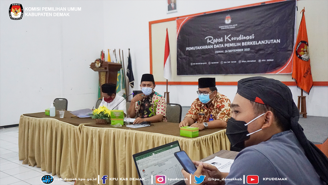 Dari hasil pemutakhiran yang dilakukan dan dituangkan dalam Berita Acara Nomor: 19/PL.02.1-BA/3321/KPU-Kab/IX/2021 tanggal 24 September Tahun 2021 tentang Rekapitulasi Daftar Pemilih Berkelanjutan Tahun 2021 Periode Bulan September, untuk bulan ini ada sebanyak 97 pemilih baru, dengan rincian pemilih laki-laki sebanyak 45 pemilih dan pemilih perempuan sebanyak 52 pemilih; ada sebanyak 59 pemilih dinyatakan TMS, dengan rincian pemilih laki-laki sebanyak 42 pemilih dan pemilih perempuan sebanyak 17 pemilih; serta pemilih ubah data sebanyak 177 dengan rincian pemilih laki-laki sebanyak 101 pemilih dan pemilih perempuan sebanyak 76 pemilih. Sehingga pada bulan September ini jumlah pemilih laki-laki sebanyak 426.679, pemilih perempuan sebanyak 426.937, dengan total sebanyak 853.616 pemilih. Pemutakhiran ini hasil kerja sama dengan Dispendukcapil Kabupaten Demak, Dinas Pendidikan dan Kebudayaan Provinsi Jateng Cabang Dinas Pendidikan Wilayah II, Rutan Kabupaten Demak, dan Pemerintah Desa.