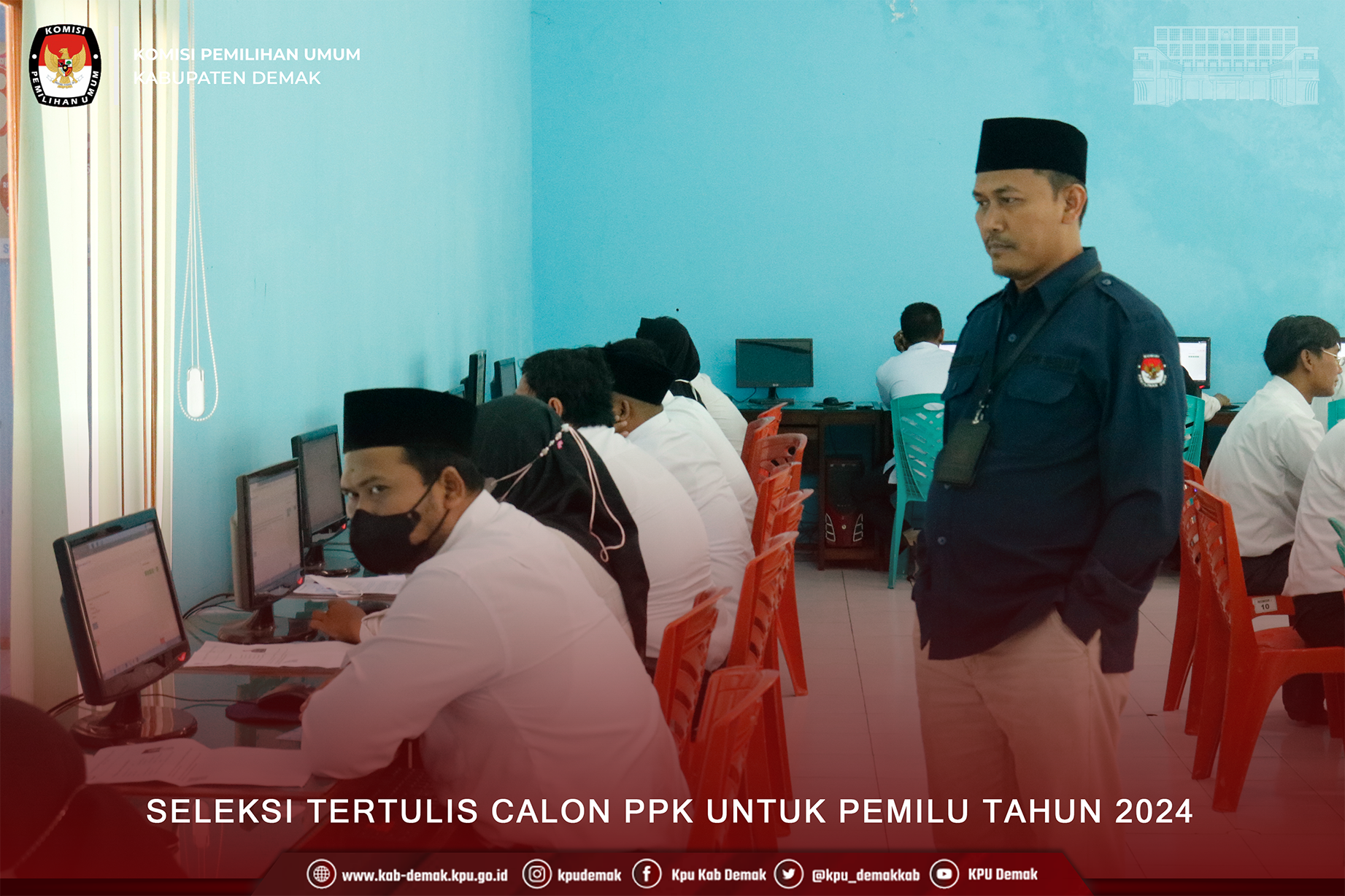 Demak, kab-demak.kpu.go.id – Pelaksanaan seleksi tertulis calon anggota Badan Adhoc Panitia Pemilihan Kecamatan (PPK) melalui metode computer assisted test (CAT) dilaksanakan secara serentak nasional di 514 KPU Kabupaten/Kota se-Indonesia pada tanggal 6 Desember 2022 dan dilanjutkan pada tanggal 7 Desember 2022 apabila belum terselesaikan.