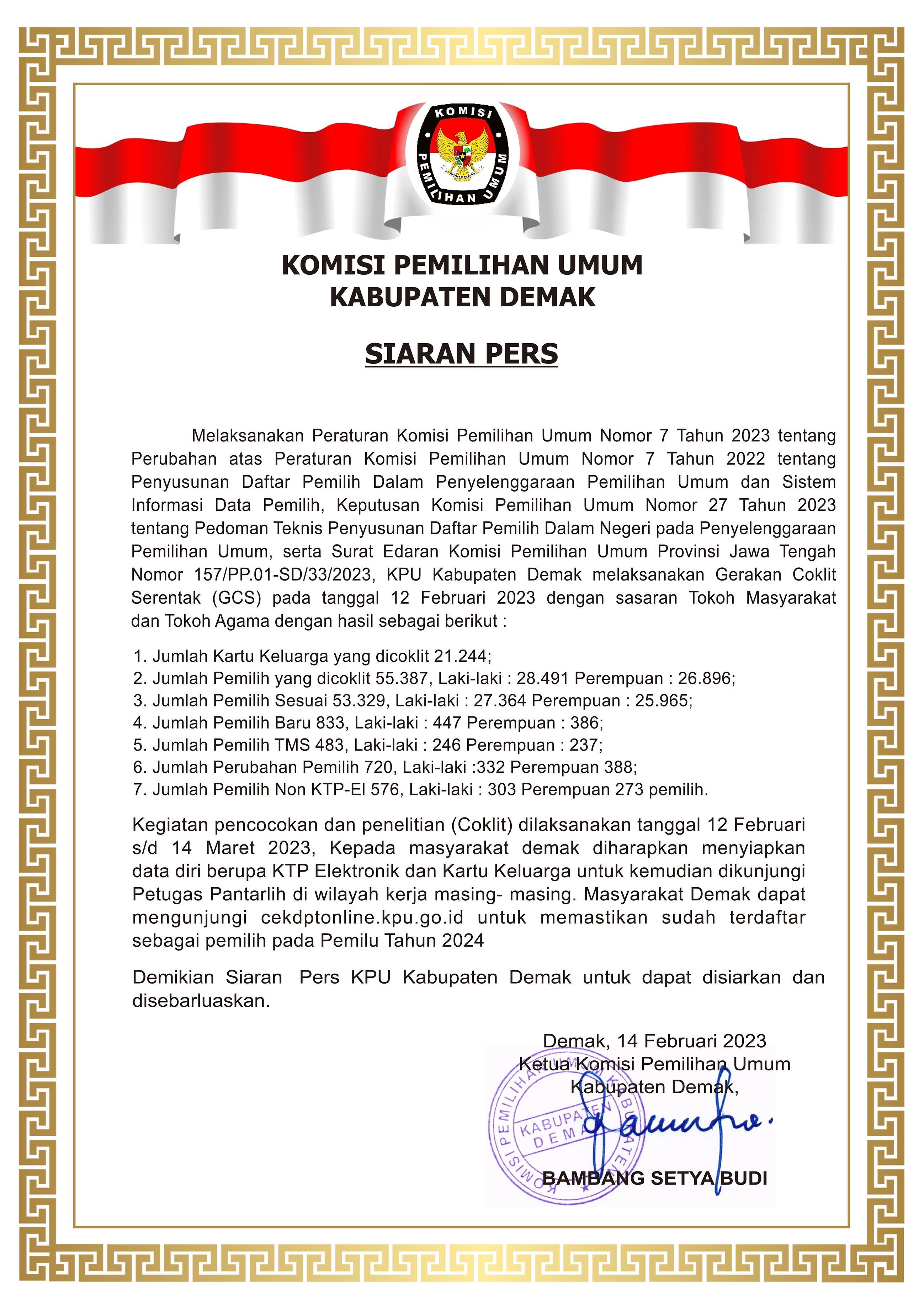 Teman Pemilih, berikut Siaran Pers Pemutakhiran Data Pemilih Berkelanjutan Bulan September 2022 KPU Kabupaten Demak: