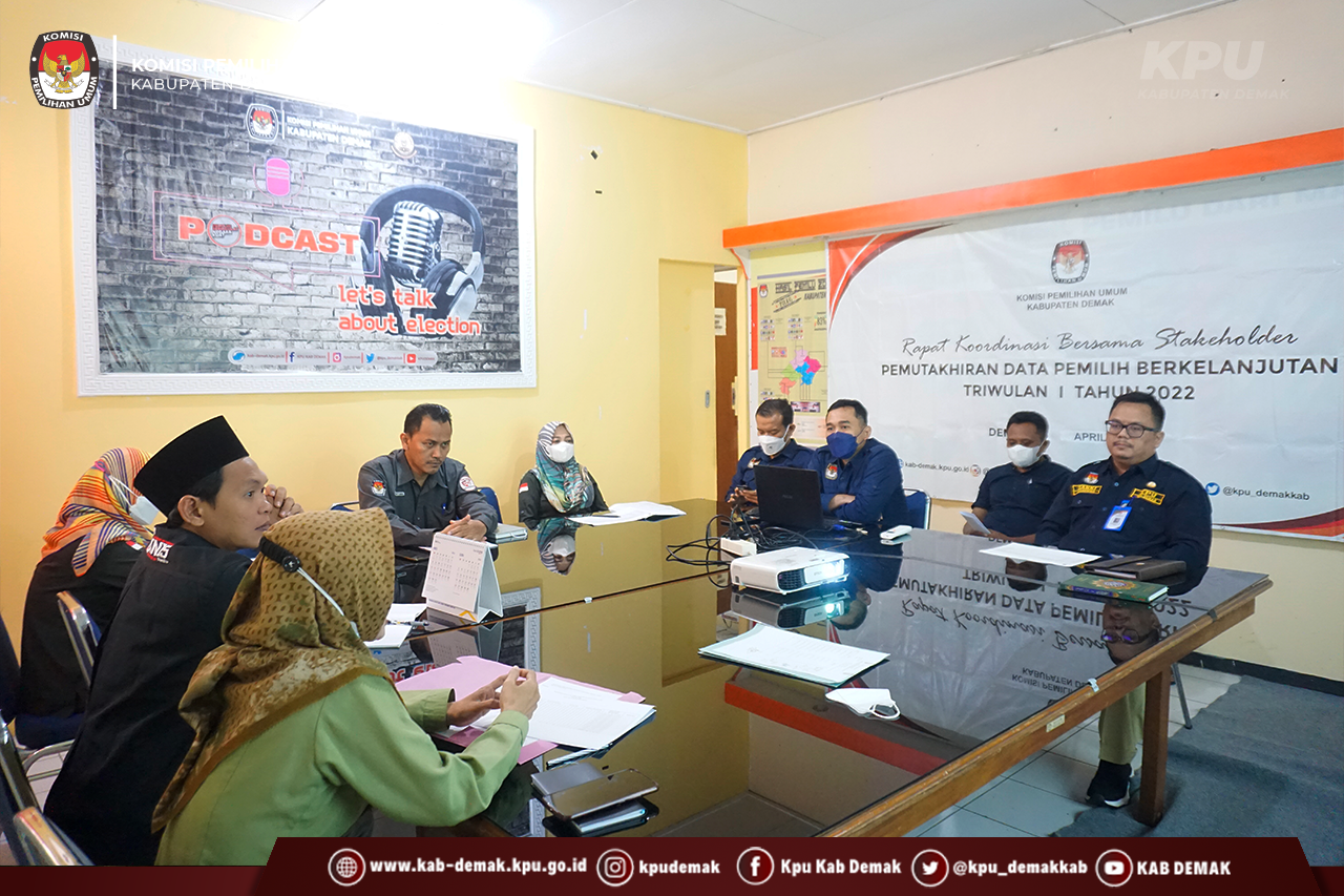 Rekapitulasi Daftar Pemilih Berkelanjutan disampaikan oleh Anggota KPU Kabupaten Demak Divisi Perencanaan Data dan Informasi, Nur Hidayah dan dituangkan dalam Berita Acara Nomor: 29/PL.02.1-BA/3321/2022 tanggal 26 April Tahun 2022 tentang Rekapitulasi Daftar Pemilih Berkelanjutan Tahun 2022 Periode April dengan hasil sebagai berikut: sebanyak 1 Pemilih Baru laki-laki; pemilih yang dinyatakan TMS sebanyak 52, pemilih laki-laki sebanyak 18 dan pemilih perempuan sebanyak 34 sehingga Daftar Pemilih Berkelanjutan periode April 2022 jumlah pemilih laki-laki sebanyak 425.562 dan pemilih perempuan sebanyak 426.170, dengan total sebanyak 851.732 pemilih. Pemutakhiran Daftar Pemilih Berkelanjutan periode April ini adalah hasil masukan dari KODIM 0716, POLRES Demak, Bawaslu Kabupaten Demak, Rumah Tahanan Demak, dan Pemerintah Desa.