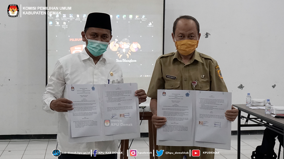 Penandatanganan dilakukan langsung oleh Bambang Setya Budi, S.Pd.I. selaku Ketua KPU Kabupaten Demak dengan Drs. Agus Budi Purwaka, M.Pd. selaku Kepala Sekolah SMA N 1 Demak di Kantor KPU Kabupaten Demak.